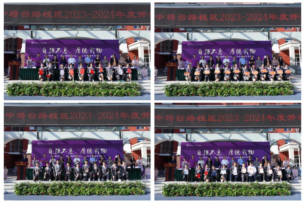 副校长张姝敏、董薇、吕宏娟分别宣读了奥森、将台路校区2022-2023学年度表彰名单。学校领导干部、嘉宾为海淀区三好学生、校级先进班集体、校级三好学生及优秀学生干部,以及各项文体竞赛的获奖者颁发荣誉证书。