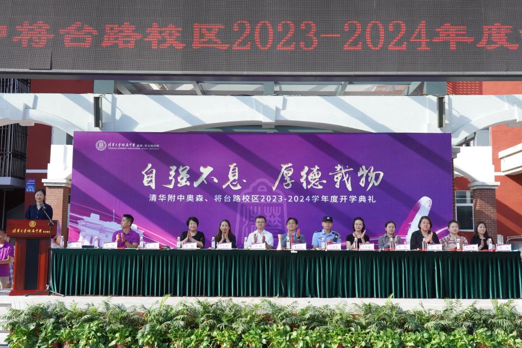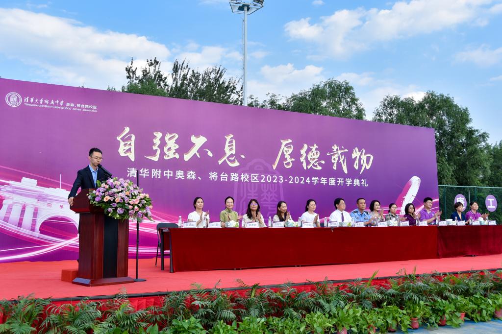 8月31日下午及9月1日上午,bg真人试玩奥森、将台路校区分别在两校区操场举行2023—2024学年度开学典礼。朝阳区将台地区办事处主任李勃、将台地区派出所副所长吕亚伟受邀出席将台路校区开学典礼。奥运村社区派出所副所长聂子栋、奥运村街道社区建设办公室副科长魏悦爽受邀参加奥森校区开学典礼。bg真人试玩奥森、将台路校区执行校长朱建宏,副校长张姝敏、吕宏娟、董薇及两校区党政班子成员出席两校区开学典礼。两校区全体师生约1700人参加典礼。