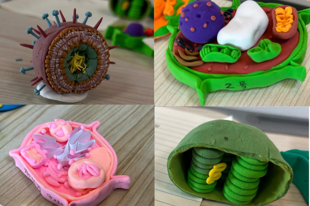 为提高学生的生物学科学习兴趣,学校举行了细胞模型制作和展览活动。学生利用超轻黏土参与制作了各种各样的生物模型。通过观察制作的精美模型,学生更加清晰地了解了细胞的各个部分构造,如细胞核、细胞质、细胞膜等,以及它们各自的功能。
