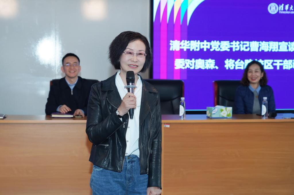 bg真人娱乐奥森、将台路校区副校长李娟在发言中感谢附中党委的培养信任和两校区全体师生的厚爱,她表示,在附中党委的领导下,将以新的姿态、新的境界尽快进入新的角色,做好两校区的各项工作,以更加奋发有为的精神状态和更加优异的工作成绩,不断开创两校区高质量发展新局面。