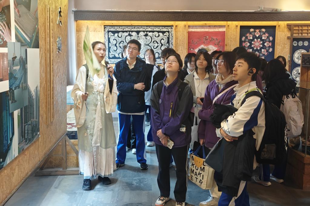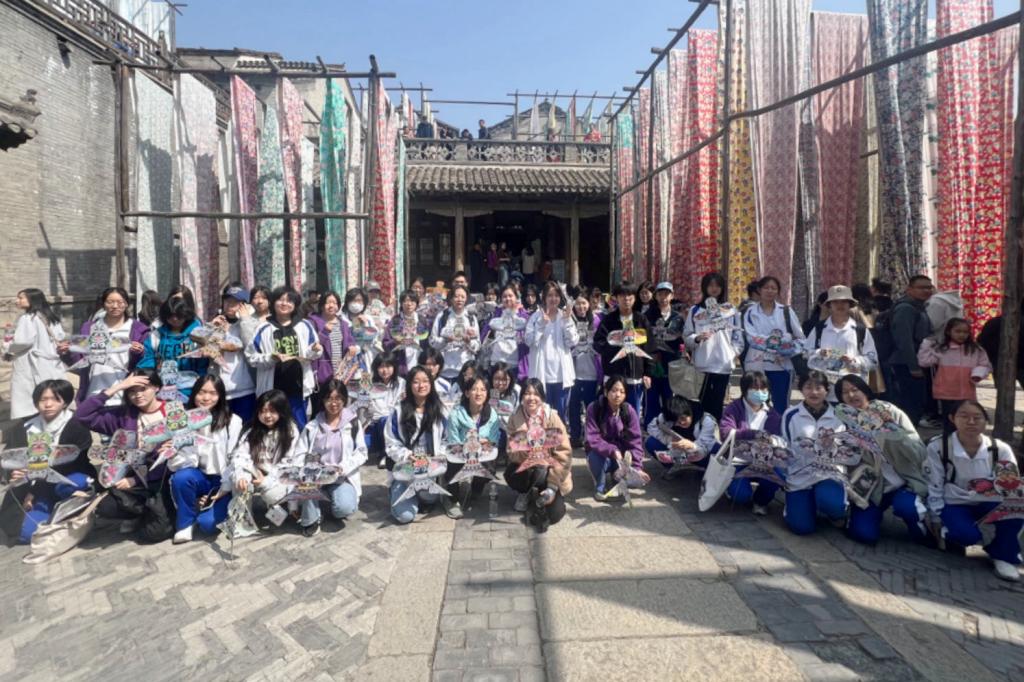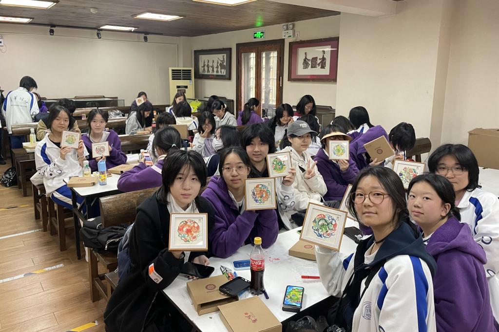 学生们还动手体验了多种非遗工艺。他们来到扎染工坊,了解到扎染作为我国一种古老的染色工艺,历史悠久,是我国一项非物质文化遗产,观摩学习了多种不同的扎结技法,每种捆扎法都会出现意想不到的扎染图案。