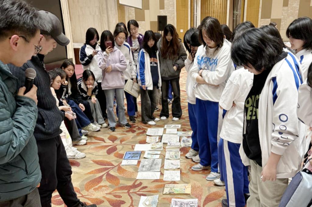 在作品点评环节,学生们精心挑选出自己最满意的作品进行自评与互评,在分享中交流经验相互学习。老师们对优秀作品进行了充分的解读和探讨,在讨论中分享绘画经验,并对本次研学中表现优异的学生予以褒奖。