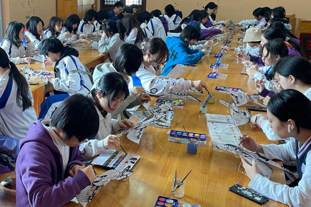 学生们走进纸鸢传统工作坊和彩绘灯笼工作坊,充分发挥想象力,通过色彩的罗列与线条的交织,不论是古意盎然还是淡雅疏落的景致,都被学生们淋漓尽致地展现了出来。