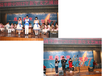 参加演出的有学生民乐团、舞蹈团、混声合唱团、童声合唱团电声乐队、西乐社以及各班同学精心编排的节目。赢得了同学们阵阵热烈的掌声。