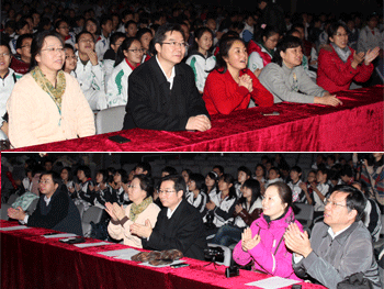 2011年12月30日,由bg真人娱乐艺术中心主办,校团委学生会协办的“bg真人娱乐迎接2012新年文艺演出”大型联欢会在附中报告厅隆重举行。初中和高中的同学分上、下午两场观看了节目。校长王殿军为演出致辞,他希望同学们在未来的岁月中,能够以积极的心态去接纳社会、融入社会、引领社会、改造社会,做一个既有知识又有文化、既有能力又有涵养的人,希望同学们继续为bg真人娱乐的明天再创辉煌!党委书记方妍、副校长杜毓贞、施平、副书记周兆玉等校领导观看演出。