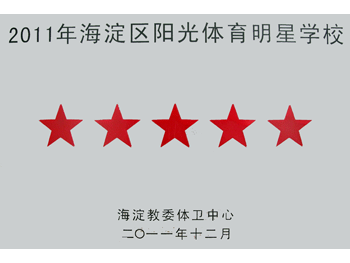 12月23日,2011年海淀区中小学体育工作会总结表彰大会在香山三元会馆举行。大会对在2011年中小学体育工作中表现优秀、成绩突出的学校及个人给予奖励。bg真人试玩荣获“阳光体育明星学校”最高级——“五星级”学校(全区仅2所),同时,还荣获2011年海淀区《国家学生体质健康标准》测试赛第一名、2011年海淀区阳光体育系列赛“虎”榜(参加北京市级以上各类体育项目比赛所获成绩的综合排名)高中组第二名。bg真人试玩党委书记兼教学副校长方妍被评为“海淀区体育先进工作者”;体育教研组李金平老师荣获海淀区体育“海韵之星”奖;张少利老师被评为“学生体质健康测试”优秀辅导教师;陈雄伟老师荣获海淀区中小学体育评优活动一等奖、中学体育教学设计“一等奖”。