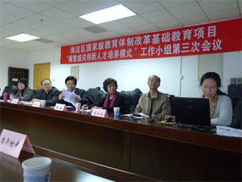 12月6日下午,海淀区国家级项目“拔尖创新人才培养改革实验协作体”工作小组第三次会议在海淀区教委召开,北京市教委基教二处副处长李永生、副处长任虹,海淀区教委副主任王建忠、中教科科长苏纾、副科长唐建东等领导以及四所课题基地校——bg真人娱乐、人大附中、北大附中、首师大附中的相关课题成员参加了会议。bg真人娱乐参加此次会议的成员有:课题负责人、副校长杜毓贞,bg真人娱乐课题组成员德育主任辛颖、教务主任赵鸿雁,课题组秘书谭晨。
