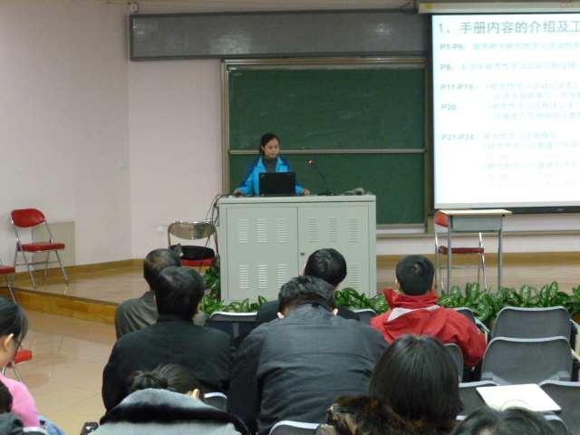 会上,赵鸿雁主任明确了各部门职责,并部署了研究性学习日程安排。龚玉新主任结合自己辅导经验,将一些常见问题和处理办法汇总起来,和辅导老师进行交流。教务处给各位辅导老师印发了《研究性学习指导手册》,并且将学生的选题整理下发,教务处肖娜老师将手册内容做了具体介绍并提出开题阶段具体工作要求。会后,高二年级的辅导教师和学生进行了见面交流。