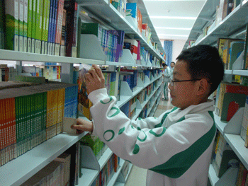 图书馆的老师向学生们介绍情况 学生们参观图书馆