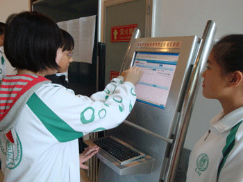 学生们用电脑查找图书文献 学生们参观95周年校史馆