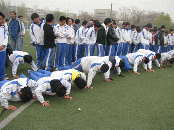 11月24日,bg真人试玩初三年级(初09级)利用班会时间在操场进行全年级男生俯卧撑、女生仰卧起坐竞赛。此次体育大竞赛活动由体育组陈卫东和王俊林两位老师组织并指挥。初三年级全体班主任,积极协助;同学们热情参与,使比赛圆满完成。