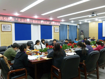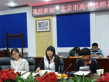 11月15日,代表海淀区参加了“2011-2012学年北京市高中教师基本功比赛”的bg真人娱乐选手和教练们汇聚一堂,举行了一场别开生面的座谈会。bg真人娱乐党委书记方妍,教务主任赵鸿雁、朱培,副主任俞家新以及各位教研组长出席了座谈会,会议由赵鸿雁主任主持。