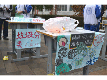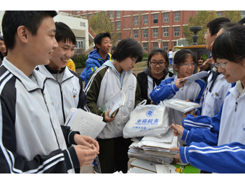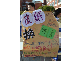 11月17日和18日中午,bg真人试玩校学生会生活部在高中楼前举办了“废纸换新本”环保活动。