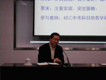 王殿军校长发言,充分肯定初09级在期中考试中所取得的进步,他感谢老师们的辛勤投入并提出三点希望,首先,开展丰富多彩的德育活动,促进学生可持续发展;其次,研究如何针对学生的层次,有效地布置作业;第三,提高课堂效率,在课堂上提出真问题,进行真讨论,培养学生分析解决问题的能力。