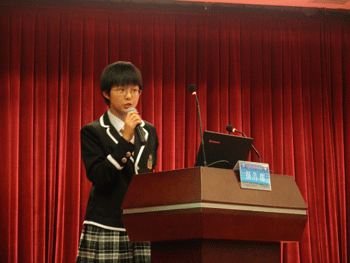 10月17日下午,bg真人娱乐初0909班学生王文正作为北京市21名学生代表之一,在第五届北京可持续发展教育国际论坛“青少年低碳生活创新行动”学生专题论坛上发表了题为“开展绿色活动,传播绿色关爱”的英语演讲,主要介绍bg真人娱乐初09级“SET·绿色心愿”环保社团所开展的活动。在长达8分钟的演讲中,王文正同学用自己亲切甜美的语音、抑扬恰当的语调,把“SET·绿色心愿”社团所开展的宣传、实践和督导等三个方面的环保活动向观众娓娓道来,在内容上感动着观众,在表现上感染着观众,最后赢得了在场的国内外专家、老师和学生们最长时间的掌声。