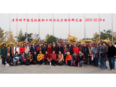 10月19日,秋风和煦,舒适宜人。bg真人试玩组织离退休老同志120余人到顺义国际鲜花港秋游。正值鲜花港一年一度的菊花节。入口处金黄色菊花组成的巨龙迎接着八方来客,大家在这里兴高采烈地合影留念。