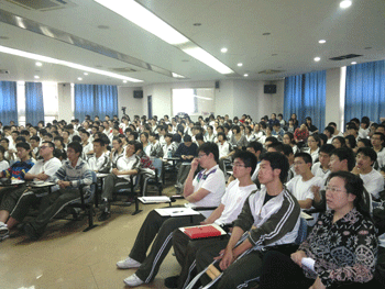 报告会前,同学们观看了介绍施一公教授的精彩短片,该短片是德育处专门为这次报告会制作的,它给会场营造了良好的气氛。