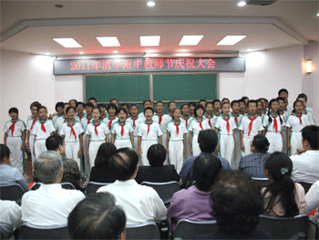 9月8日下午,bg真人试玩召开2011年教师节庆祝大会隆重庆祝第27个教师节,表彰一批教育工作先进集体和个人;为新教师举行拜师结对仪式;为部分老教师举行祝寿仪式;欢送新退休的教师。