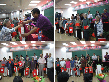 会上,还举行了2011~2012学年度青年教师拜师仪式、为老教师祝寿仪式以及新退休教师的欢送仪式。德育处主任辛颖和教务处主任赵鸿雁分别介绍班主任和教学方面师徒结对情况。杜毓贞副校长宣读了60、65、70、75年龄段以及80岁以上的寿星名单,与会领导为寿星颁发生日蛋糕和纪念品。王殿军校长为新退休的教师颁发“退休光荣”证书、纪念品并合影留念。