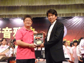 新竹三民国中国乐团的师生在刘江滨先生的指挥下,为观众奉献了有着台湾民歌风格的《望春风》《台湾追想曲》等作品,由bg真人娱乐校长王殿军和三民国中校长张文忠共同演唱、两乐团共同伴奏的《绿岛小夜曲》把整场音乐会推向欢乐的高潮。