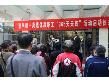 9月19日上午,bg真人娱乐离退休教职工“365天天练”活动启动仪式在清华大学老年活动中心举行。清华大学离退休处处长刘秀成、bg真人娱乐党委副书记兼离退休工作领导小组组长周兆玉出席启动仪式并讲话。随后,老同志们在校园里迈开大步集体行走,开始了“365天天练”正式启动后的首次活动。