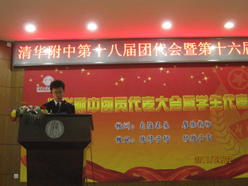 本次大会由团委学生会秘书长古风同学主持。会议在庄严的国歌声中拉开序幕。与会领导和教师为即将离开团委学生会工作岗位的高三和初三年级同学颁发了证书及纪念品,高0901班王乐昕同学作为团委学生会干部代表发表了感言。团委副书记笪颢天同学作了第十七届校团委工作报告,学生会副主席马伊腾同学作了第十五届学生会工作报告,工作报告对一年来团委学生会的工作进行了充分总结,并提出了有建设性的展望。