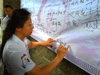 本期学生领袖训练营闭营仪式在中华门举行。同学们回顾了参加学生领袖训练营一年来的学习实践历程,并畅谈了自己的感受和收获。杜毓贞副校长对学员们提出了殷切希望并在签字版上写下了“修身齐家治国平天下”的希望。