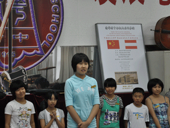 乐团新生们逐一做了自我介绍和学艺的经过,有的同学还设想了自己在乐团三年的生活。之后,胡军老师以《做金帆人 铸民族魂》为主题致欢迎辞,胡军老师讲到:我校的东南,是世界著名的清华大学,我校的西北,是名扬天下的万园之园—圆明园。圆明园毁于国耻而清华大学始于国耻。作为金帆民乐团的一员,维护我们的传统文化安全,让世界感受古老的中国音乐魅力,是我们理应肩负的责任与使命。我们要像小小的萤火虫,哪怕只能发出微弱的光,也要照亮我们身边的些许世界,尽自己的微博力量保护我们的文化传统不被遗忘,通过音乐艺术,把我们5000年的民族精神传播出去,当16亿华人都放光发热时,世界必将感受到万丈光芒。