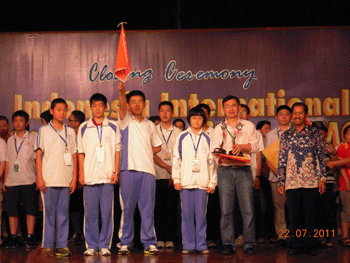 7月18~23日,2011第12届青少年数学国际城市邀请赛在印尼巴厘岛举行,bg真人娱乐初09级四名同学在领队杨青明老师和徐蓉老师的带领下,与来自其他省市的共八支队伍代表中国大陆参赛。在个人赛中bg真人娱乐黄英奇同学获得金牌,郑昊、王芝菁、刘天一同学获得银牌,总成绩名列第二名;并在团体赛中一举摘得冠军。综合个人赛和团体赛成绩,bg真人娱乐取得总亚军的好成绩,为中国、为bg真人娱乐争得了荣誉(总冠军由中国上海代表队摘得)。