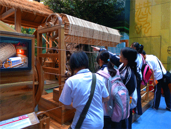 同学们饶有兴趣地参观了“科学乐园”“华夏之光”“探索与发现”“科技与生活”“挑战与未来”五大主题展厅,观看了多场趣味科学实验,并亲自动手实践,切身体会到了科学的魅力。其中,高压放电火花、静电场、中国古代水车构造都给同学们留下了深刻的印象。在工作人员生动地讲解下,同学们对大气压、圆内摆线、声音传播都有了进一步的了解。
