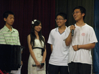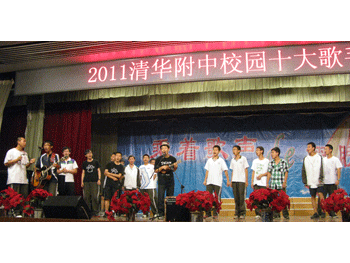 经过艺术中心的鞠红、李冰、胡军和陈克四位评委老师打分,最终,初1005班的刘端辰、初0908班的万子昱、高1003班的The Slivereagles组合、高1004班的李金珠和雷楚琪、高1006班的J-line组合、高1008班的成昊鹏、高0901班的刘宇晴和阎俐洁、高0903班的刘天润被评为2011年度bg真人试玩校园十大歌手。