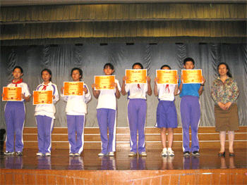 在表彰会上,陈桂芬副主任分别宣读了初10级、初09级优秀集体和优秀个人的表彰名单。初10级优秀中队有:初1001中队、初1004中队、初1005中队、初1009中队、初1012中队、初1013中队、初1014中队;初09级优秀中队有:初0901中队、初0902中队、初0906中队、初0907中队、初0911中队、初0912中队。杜毓贞副校长向优秀集体颁奖,并勉励同学们要珍惜幸福生活,刻苦努力学习,做国家的栋梁之材。