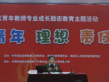 5月6日下午,海淀区青年教师专业成长励志教育主题活动在bg真人娱乐举行。为迎接建党90周年,海淀区教工委举办了“青年 理想 责任”青年教师专业成长主题活动,活动分为论坛和倾听活动两个部分。海淀团区委副书记汪亮、海淀区教委办公室主任纪晓恒出席了论坛,海淀区政府督导室副主任杜荣贞、bg真人娱乐副校长杜毓贞参加了倾听活动。