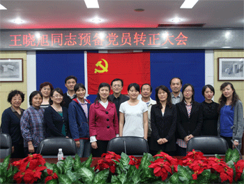 王晓旭同志于2010年4月7日在华东师范大学就读期间被接收为中国共产党预备党员。2010年8月本科毕业后即到bg真人娱乐国际部工作至今。