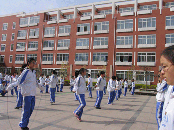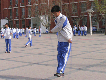 4月8日下午,bg真人娱乐初二年级(初09级)在高中楼前小广场举办了别开生面的跳小绳比赛,全年级学生参加比赛。