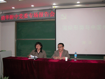 4月21日下午,bg真人娱乐党委邀请清华大学国际关系学系副主任、清华-卡耐基全球政策中心研究员陈琪来校作了题为《国际形势与中国外交》的形势分析报告。bg真人娱乐全体在职党员、积极分子130多人听取了报告。报告会由bg真人娱乐党委副书记周兆玉主持。