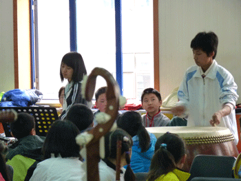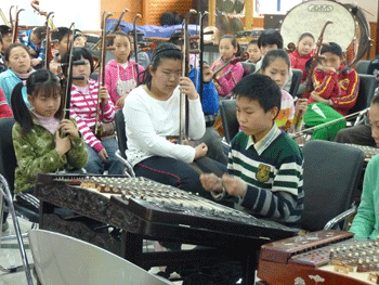 翠微路小学09届毕业生王轶菲向母校师生汇报自己在附中乐团的学习情况-右图