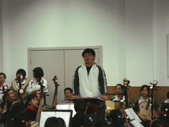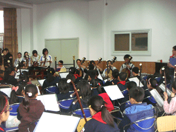 bg真人试玩同学向安慧里小学乐团李文祥老师献上鲜花 两校民乐团的同学们互相交流演奏心得