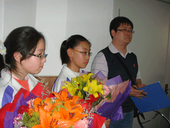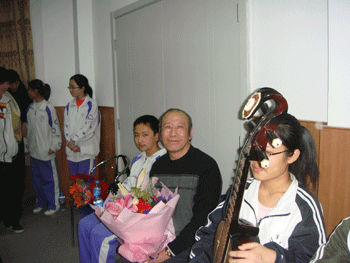 之后,胡军老师向安慧里小学的师生们介绍了bg真人试玩和附中金帆民乐团的情况,并代表学校感谢安慧里小学多年来向bg真人试玩不间断地输送民乐人才,bg真人试玩同学还向母校的老师们献上了鲜花,表达感谢之情。