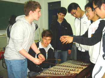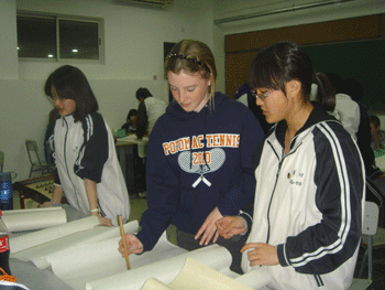 美国学生向附中学生学习民乐弹奏 美国学生向附中学生学习书法