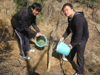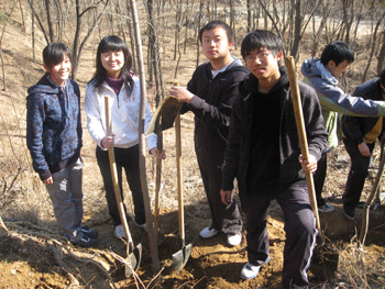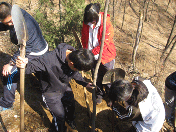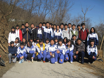 当天正值第27个首都全民义务植树日,北京各界群众奔赴全市城乡各地,植树护林,栽花种草,认建认养,以多种形式尽绿化义务,为建设“绿色北京”做贡献。中学生们也不甘落人后,初春的北京乍暖还寒,但同学们热情高昂,在林业工人师傅的指导下,短短一个小时内种下了7棵白蜡树。挖土、刨坑、扶树、填土、夯土、培土、浇水,看着自己亲手劳动的成果,同学们非常自豪。