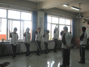 整场活动通过“大风吹”的环节进行了热身。活动分为两个部分,第一部分是以“责任”为主题的集体合作。活动设计别具匠心,令人回味无穷。活动前陈明秋老师将学员每7人一组分为三组,并教给同学们一套简单的动作,每个动作对应一个简单的口令。三个小组要分别来完成几组动作。