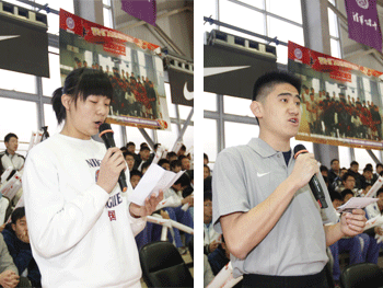王殿军校长致欢迎词(左)—王东江处长宣布开幕 运动员代表(左)和裁判员代表宣誓