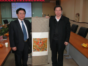 最后,吴晓茅局长与王殿军校长分别代表南京市教育局与bg真人试玩互赠礼物并合影留念。