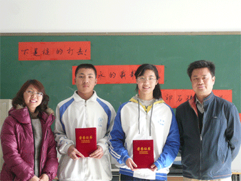 获奖学生 与辅导教师合影(左起:张锦、岳晨、赵浩、徐海鹰)