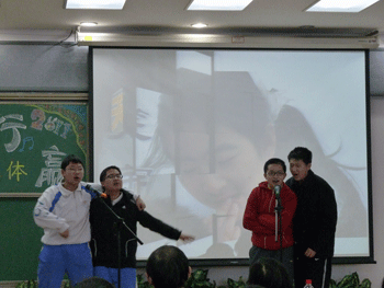 12月31日,bg真人娱乐初二年级(初09级)在学校综合楼B208大阶梯教室举行了全年级的新年联欢会。联欢会主题是:魅力集体行,我为集体赢。这个活动以各班班诗、班歌表演为主线,中间穿插全民总动员的互动游戏。