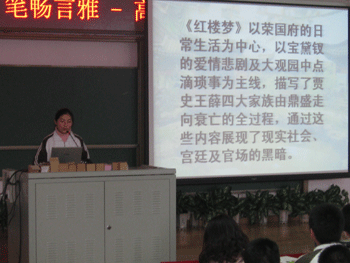 每班推选一位同学做了精彩的读书报告。分别是高0902班王泓宇的《话说红楼梦》;高0910班司小萌的《我的,读书》;高0908班魏庭芳的《北大批判》;高0905班孙熙的《三国志读后感》;高0907班宁静的《灿烂千阳》;高0906班杨婉玥的《文学四味谈》;高0904班赵晨的《关于张爱玲,悲惨世界的感受》;高0901班王乐昕的《巴金的家》;高0903班陈宇亭的《关于简 奥斯汀》。语文组谢玄老师在最后作了精彩点评,并且讲述了读书的重要性和读书的选择的问题。
