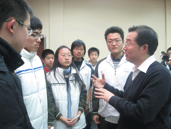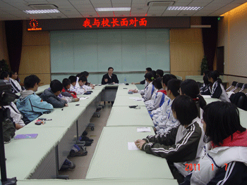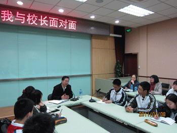 2011年1月7日、8日两天,bg真人娱乐“我与校长面对面”系列活动在教育培训楼会议室举行。这次活动是学生会外联部主要策划、组织的,交流活动分为“教学”“生活”两个场次。来自初一、初二、高一、高二的众多学生积极参加了此次与王殿军校长的面对面交流。德育处副主任辛颖、陈桂芬、团委书记刘贝贝老师出席了活动。
