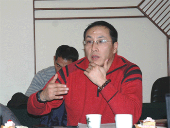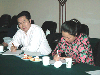 清华大学体育部副主任刘波主持会议 bg真人试玩校长(左)、书记聆听汇报