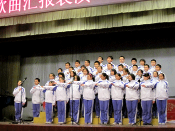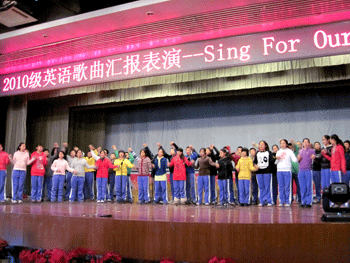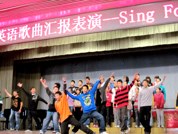 初一年级14个班的全体同学充分展示了本学期的英语早读成果,以歌声回顾了一学期的努力,歌曲涵盖经典、流行,服装造型精彩各异,演唱、伴舞富于激情,尽现优秀的英文水平及亮丽的青春风采。老师们也做了即兴表演,给同学们送上新年的祝愿。初10级英文歌曲汇报表演获得圆满成功。